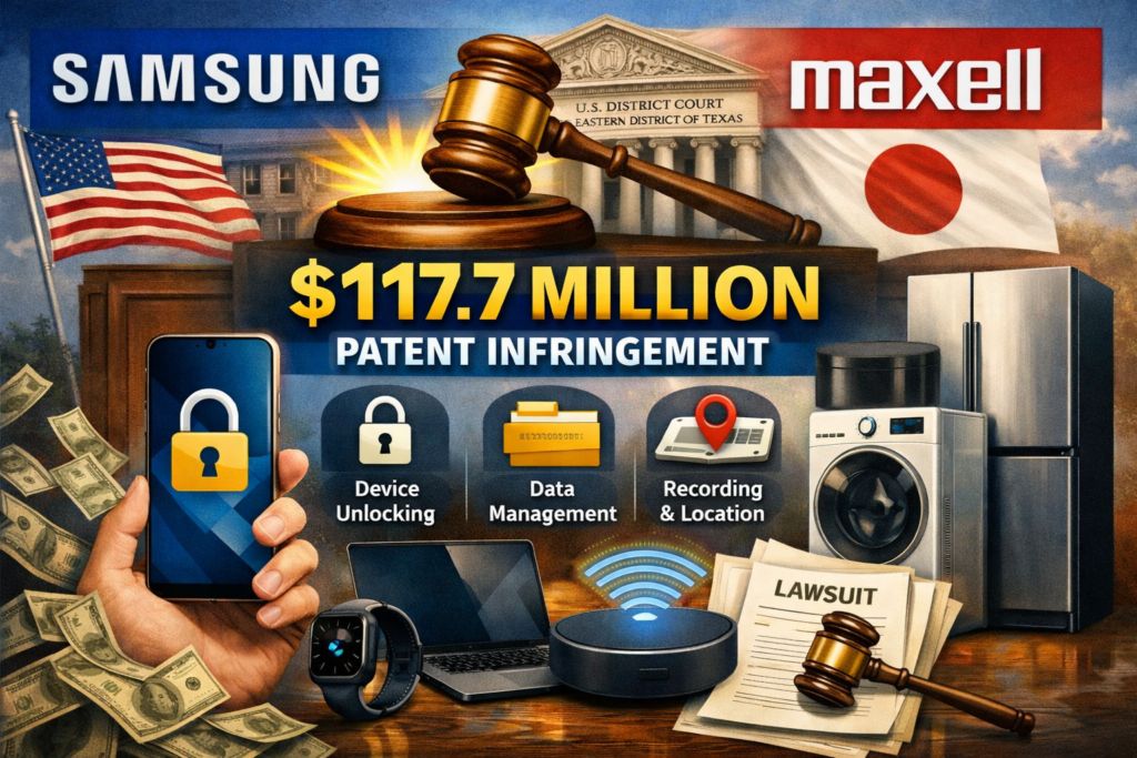 Samsung Electronics has been ordered by a U.S. federal jury to pay approximately $117.7 million in damages to Japanese electronics firm Maxell Ltd. for infringing on three of its patents. The verdict, delivered in the U.S. District Court for the Eastern District of Texas, found that Samsung willfully infringed patents related to features such as