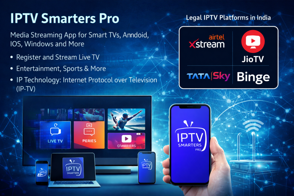 IPTV Smarters Pro is a media streaming application that supports smart TVs, Android, iOS, Windows, and other platforms in providing consumers/end-users the ability to stream live TV, entertainment and sports content, etc. Users may download the IPTV Smarters Pro application and register their accounts for availing the service. The application relies on the IPTV technology (Internet Protocol over Television) which provides delivery of audio/visual/graphic/textual data over IP-based networks. Legal IPTV platforms in India include Airtel Xstream, JioTV, and Tata Sky Binge.
